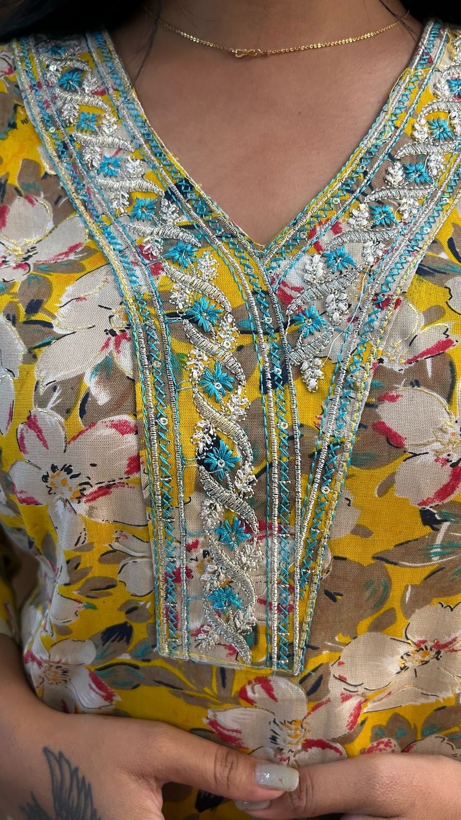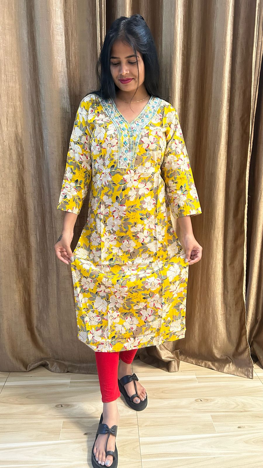 + Free ShippingTop – V Neck Printed Kurti with Golden Foil Print touch