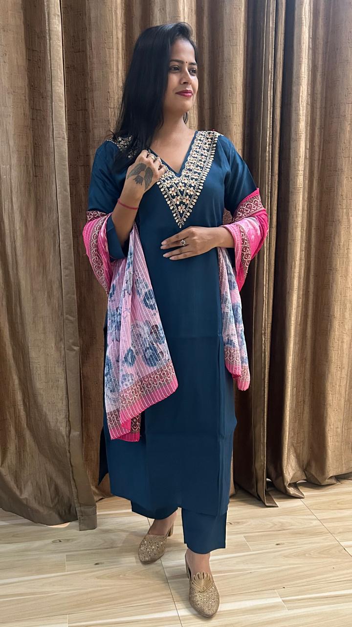 Kurti V neck A-line kurti With Inner Liner